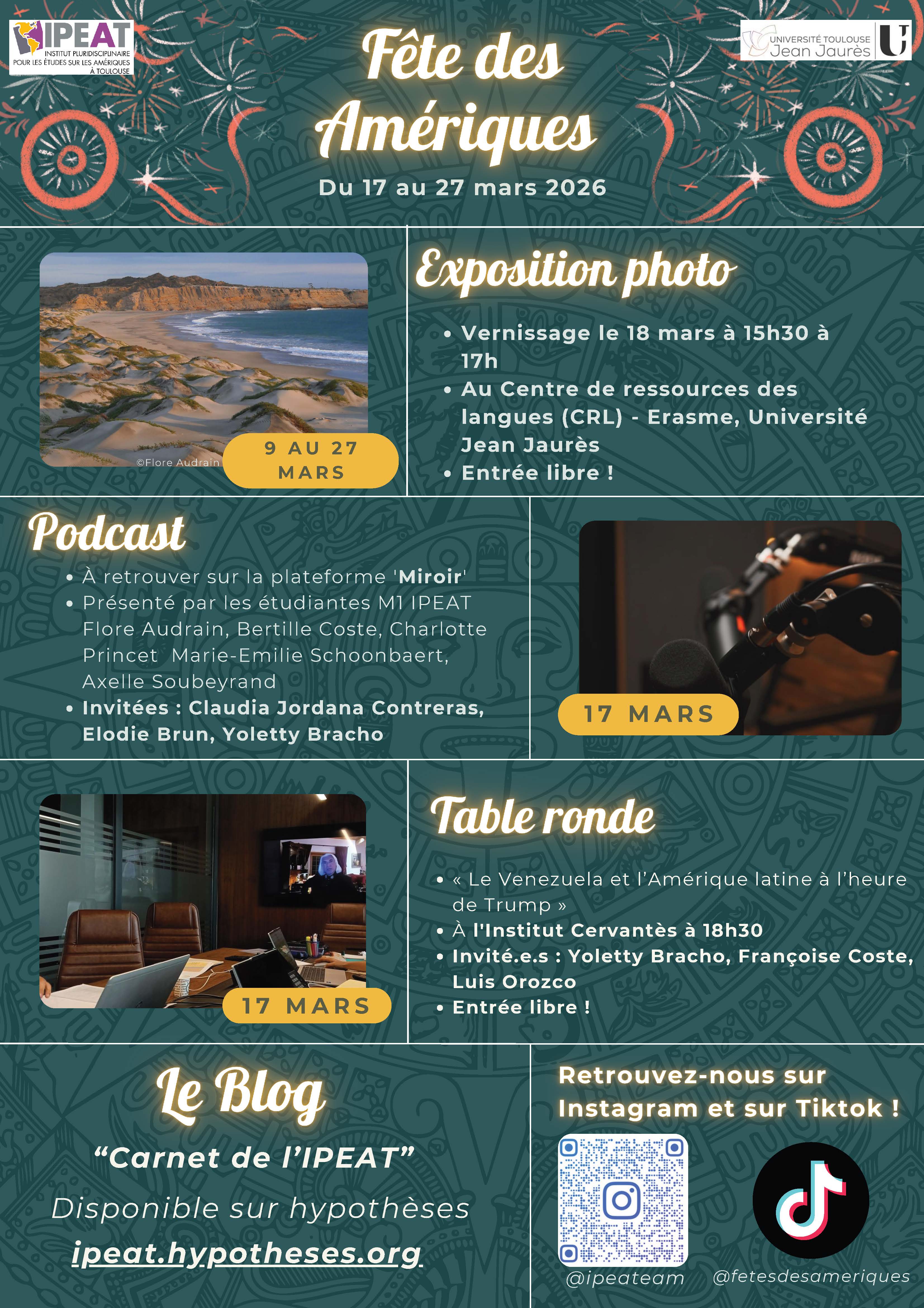 Retrouvez l’équipe de communication sur Instagram (@ipeateam) et TikTok (@fetedesameriques) : entre humour et analyse, elle décrypte l’actualité des Amériques, partage les bonnes adresses latino-américaines à Toulouse pour vous régaler et vous fait vivre la Fête de l’intérieur.